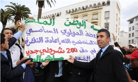ورفع عشرات من 50 من متدربي الشرطة بزي المتدربين المدني، لافتات بشعارات مطلبية، قبل أن تتدخل قوات الامن لمطالبتهم بإخلاء المكان، و دفعهم نحو شارع علال بنعبدالله حيث نشبت مناوشات اخرى.