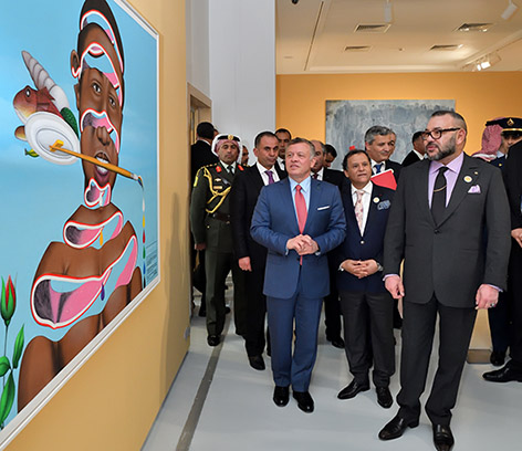 وبهذه المناسبة، قام جلالة الملك وضيفه الكبير صاحب الجلالة الملك عبد الله الثاني ابن الحسين بزيارة ثلاثة معارض أعدت في إطار هذه التظاهرة، وهي "نظرة معاصرة على الفن الإفريقي"، و" وجود مشترك"، و"تكريم".