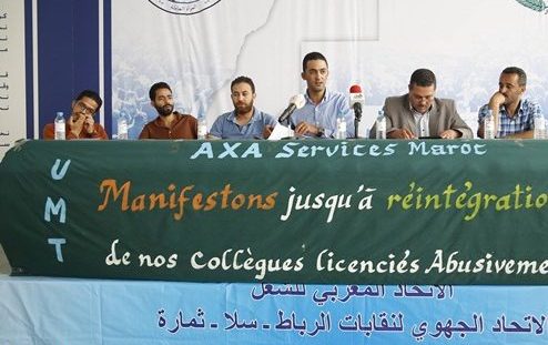 حمل الاتحاد الجهوي لنقابات الرباط، التابع للاتحاد المغربي للشغل، مسؤولية النزاع الجماعي للشغل بشركة "أكسا خدمات المغرب"، لمديرها العام الفرنسي الذي أقدم على طرد ستة ممثلين نقابيين بالشركة. واعتبر الاتحاد، أن الشركة، قامت بخرق سافر للدستور ولكل القوانين والمواثيق الدولية التي تحمي حرية العمل النقابي، بطردها ستة من ممثلي الأجراء، مباشرة بعد تشكيلهم للمكتب النقابي بالمؤسسة.