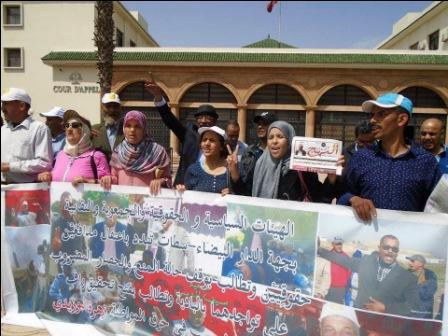 ويؤازر المعتقلين أكثر من 30 محامي منهمة مصطفى المانوزي، رئيس المنتدى المغربي للحقيقة و الإنصاف. وحضر للاحتجاج أمام المحكمة المئات من المتضامنات و من المتضامنين من ضمنهم أعضاء من فروع الجمعية المغربية لحقوق الإنسان (الجديدة، سطات، برشيد، المحمدية، البرنوصي، خريبكة، الدار البيضاء)، و نشطاء من النهج الديمقراطي من فروعي خريبكة، المحمدية، طنجة، الدار البيضاء (الجنوبية و الشمالية)، برشيد، الجديدة...