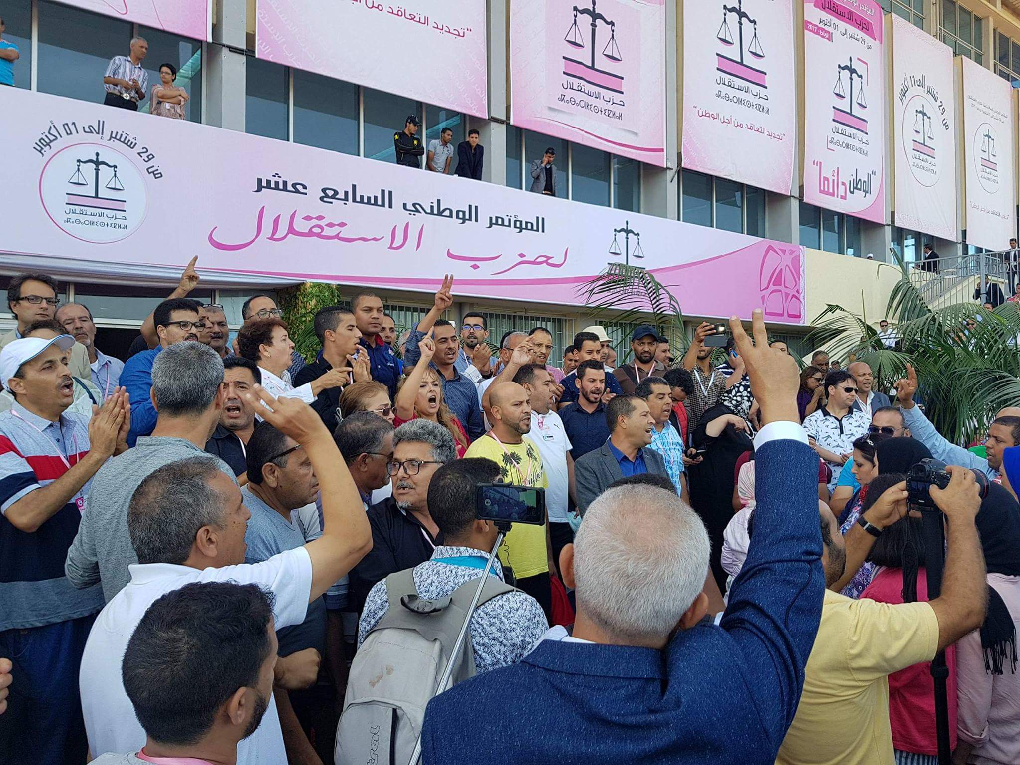 واحتج انصار حميد شباط الأمين العام المنتهية ولايته قبل قرار التأجيل و نظموا وقفة احتجاجية في جنبات وأروقة القاعة المخصصة لانتخاب الأمين العام، احتجاجا على التنظيم الذي وصفوه ب”السيئ” .واتهم انصار شباط الشركة المكلفة بالتنظيم بالفشل في عملية طبع البطاىق وتنظيم توزيعها على أعضاء المجلس الوطني، حيث رضدوا خللا في توزيع بطائق التنظيمات والروابط الموازية للحزب التي يفوق عددها 400 بطاقة .