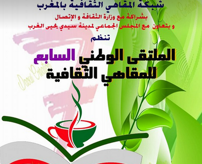 تنظم شبكة المقاهي الثقافية بالمغرب الملتقى الوطني السابع للمقاهي الثقافية بشراكة مع وزارة الثقافة والاتصال وبتعاون مع المجلس الجماعي لمدينة سيدي يحي الغرب وشركاء اخرين يومي 2 و 3 فبراير 2018 بدار الثقافة بمدينة سيدي يحي الغرب بمشاركة ممثلي ازيد من ٢٨ مقهى ثقافي وادبي بربوع الوطن ...
