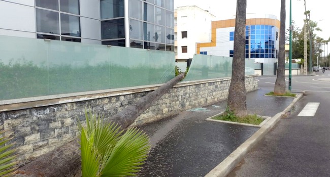 خلفت  موجة  الرياح القوية الت اجتاحت معظم الجهات بالمغرب،  العديد من الخسائر المادية، كما يظهر من خلال هذه الصورة التي نشرتها العديد من المواقع الالكترونية حيث اقتلعت العاصفة في طريقها الاشجار والاعمدة الكهربائية واللوائح الاشهارية.