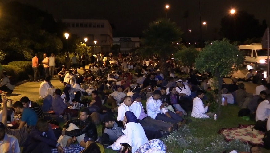 الأساتذة المتعاقدون يبيتون أمام وزارة التربية الوطنية