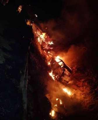 وأسفر الحادث  عن مصرع سائق إحدى الشاحنتين بعدما شبّ حريق مهول في أجزاء الناقلة.