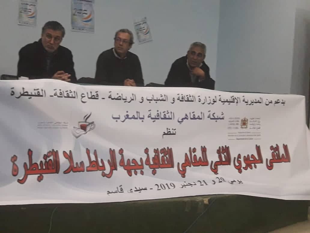 نظمت شبكة المقاهي الثقافية بالمغرب يومي 20 و21 دجنبر 2019 بدعم من المديرية الإقليمية للثقافة بالقنيطرة ، الملتقى الجهوي الثاني للمقاهي الثقافية بجهة الرباط سلا القنيطرة بحضور ممثلي المقاهي النشيطة بالجهة .