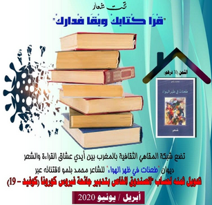 أطلقت شبكة المقاهي الثقافية بالمغرب، مؤخرا، مبادرة تضامنية رمزية للمساهمة في المجهود الوطني ضد جائحة فيروس كورونا المستجد (كوفيد-19)، تحت شعار “قرا كتابك وبقا فدارك”.