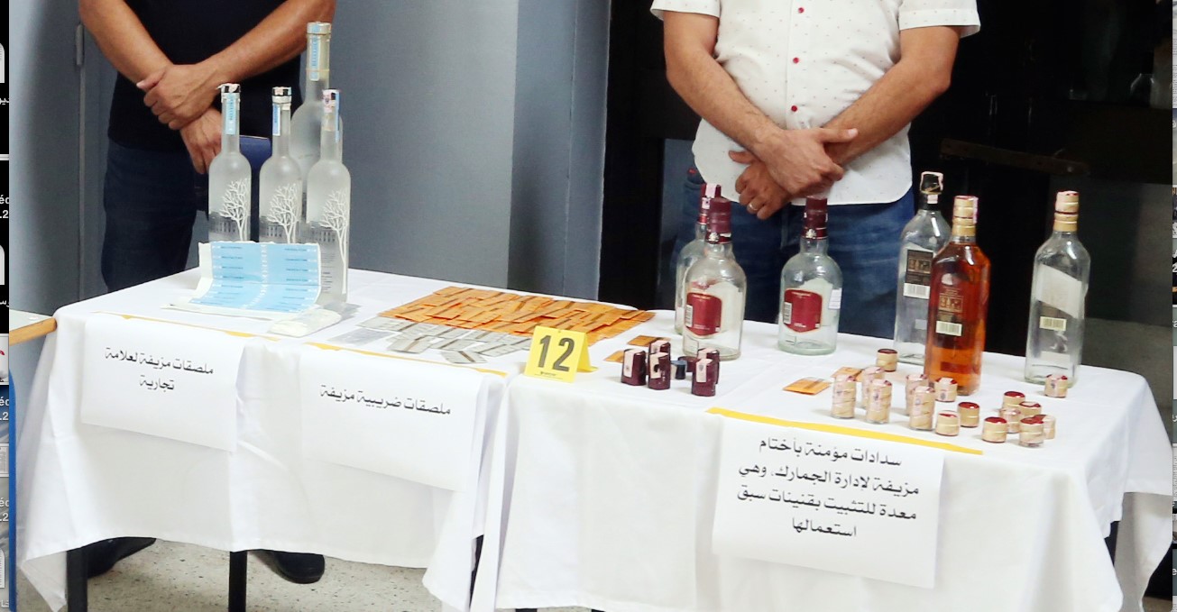 وقد أسفرت عمليات التفتيش المنجزة داخل الوحدة الفندقية عن حجز 108 ملصق ضريبي مزيف يتم تثبيته على قنينات المشروبات الكحولية لتقديمها على أنها خاضعة للتعشير عند الاستيراد، و22 سدادة مؤمنة بختم مزيف لإدارة الجمارك، وهي معدة للتثبيت بقنينات سبق استعمالها، إضافة إلى 74 قنينة فارغة معدة للتعبئة ولإلحاق البيانات الضريبية والإشهارية المزيفة، و11 قنينة مملوءة بالمشروبات الكحولية المهربة، و09 قنينات مستهلكة جزئيا.