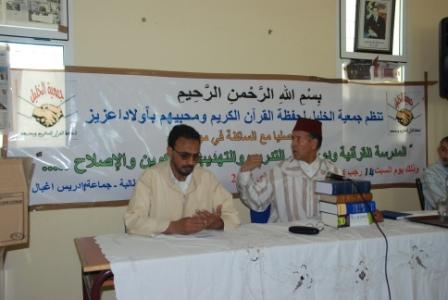 نظمت جمعية الخليل لحفظة القرآن الكريم ومحبيهم باولاد اعزيز جماعة مولاي إدريس أغبال، عمالة إقليم الخميسات لقاء تواصليا مع الساكنة في موضوع : المدرسة القرآنية ودورها في التدريب والتهذيب والتكوين والإصلاح ... " صباح يوم السبت 25 ماي بمقر دارالطالبة بجماعة مولاي إدريس أغبال