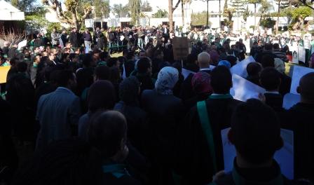 و قال مخلي ان وقفة اليوم تسجل ولادة السلطة القضائية الممانعة، التي ترفض وصاية وزارة العدل و وزارة الداخلية, و قال رئيس نادي القضلةن ان وقفة السبت هي رسالة للتعبير عن رفض مسودة قانون السلطة القضائية ، مضيفا أن وزير العدل و الحريات مصطفى الرميد أخلف موعده مع إلاح القضاء.