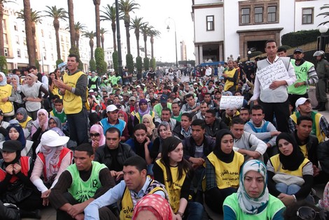 خرج المعطلون صباح أمس الأحد في مسيرة احتجاجية نحو مقر ولاية الرباط سلا زمور زعير ،مكسرين بذلك السكون الذي كانت تغرق فيه العاصمة نهاية هذا الأسبوع عبر ترديدهم شعارات "إسقاط حكومة بنكيران" وليس المطالبة بحق الشغل.