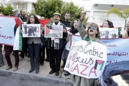 وهتف المشاركون في هذه الوقفة، التي دعت إليها منظمات حقوقية مغربية عدة، ضمنها المرصد المغربي لمناهضة التطبيع، بشعارات تدين منع السلطات المصرية ناشطات حقوقية من التوجه إلى غزة عبر مصر.