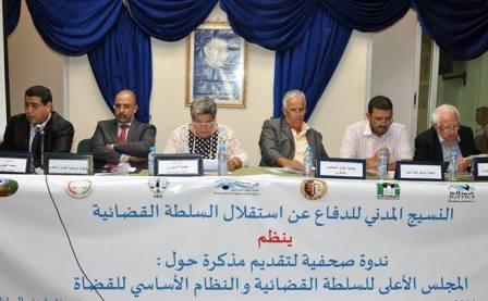 وقالت السيوري خلال ندوة صحفية نظمها النسيج المدني صباح الخميس ،"من الصدف أن وزارة العدل والحريات قررت عرض نص مشروع القانون التنظيمي للمجلس الأعلى للسلطة القضائية على أنظار الحكومة تزامنا مع تقديم النسيج المدني للدفاع عن استقلال السلطة القضائية للصيغة النهائية لمذكرته بشأن الموضوع "، وهي المذكرة التي كانت نتاج لقاءات تشاورية ومناظرة وطنية نظمت أوساط شهر ماي الماضي بالرباط بدعم من مؤسسة فريديتش إيبرت الأمانية بتعاون مع الفيدرالية الدولية لحقوق الإنسان والشبكة الأرومتوسطية لحقوق الإنسان، واللجنة الدولية للحقوقيين وبمشاركة وزارة العدل والمجلس الوطني لحقوق الإنسان.