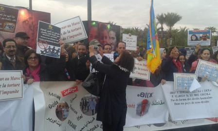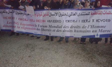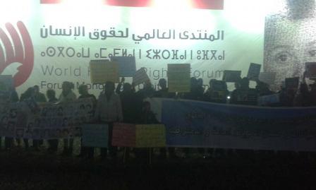 نظم عشرات من نشطاء الجمعيات المقاطعة للمنتدى العالمي لحقوق الانسان  ، وقفة احتجاجية الخميس تزامنا مع الافتتاح الرسمي للمنتدى بمراكش.