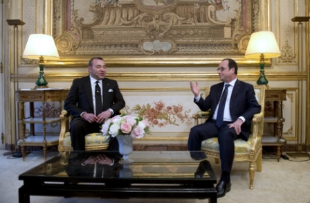 أجرى الملك محمد السادس،  بعد زوال اليوم الاثنين بقصر الإيليزيه بباريس، مباحثات مع رئيس الجمهورية الفرنسية فرانسوا هولاند. و جاء في البيان المشترك الصادر بالمناسبة أن رئيس الجمهورية الفرنسية  فرانسوا هولاند  و الملك محمد السادس، ملك المغرب، تطرقا  لمجموع القضايا الإقليمية والدولية.