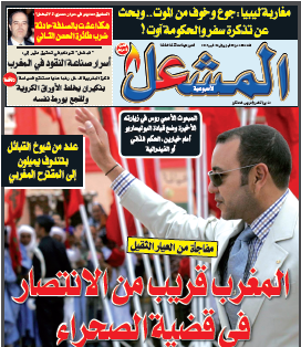 بعد حجب إدارة "المشعل" يوم الخميس الماضي لعددها الأخير من السوق، عادت لإصدار عدد جديد من "أسبوعية المشعل" يتضمن غلافا بعنوان عريض: مفاجأة من العيار الثقيل "المغرب قريب من الانتصار في قضية الصحراء".
