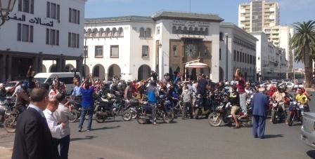 احتج العشرات من اصحاب الدراجات النارية من نوع سكوتر و أزيد من مائة سنتميتر مكعب، الاثنين امام ساحة البريد بالرباط، على الاجراءات الجديدة المتعلقة بالترقيم و اجبارية رخصة السياقة.
