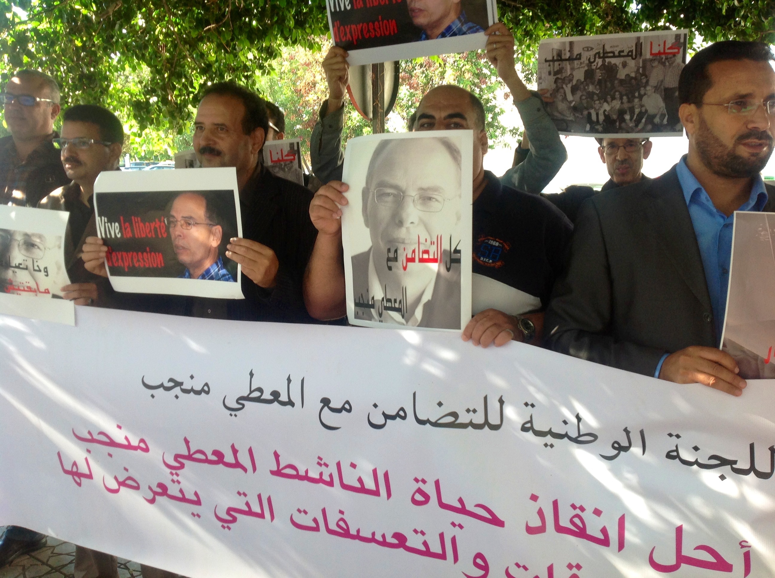 نظمت اللجنة الوطنية للتضامن مع المعطي منجب الذي يخوض إضرابا عن الطعام لامحدود بمقر فرع الرباط للجمعية المغربية لحقوق الإنسان ، وقفة احتجاجية امام المحكمة الإدارية بالرباط، الثلاثاء ، تزامنا مع الدعوى التي رفعها دفاعه ضد وزارة الداخلية و النيابة العامة .