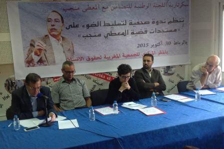 أكد النقيب عبد الرحيم الجامعي عضو هيئة دفاع المعطي منجب أن النيابة العامة وجهت عددا من التهم لسبعة نشطاء و صحافيين من ضمنهم منجب تتعلق ب "المس بالسلامة الداخلية للدولة وتسلم مبالغ من جهات أجنبية خلافا لما ينص عليه قانون الحريات العامة، و لمنجب تهم النصب وتسير جمعية في نشاط غير الذي يسمح به القانون".