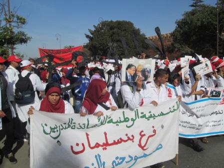 وأعلنت التنسيقية الوطنية للأساتذة المتدربين بالمراكز الجهوية لمهن التربية والتكوين، في بلاغ لها اليوم، عن برنامج "نضالي" جديد للمطالبة بإسقاط المرسومين، تبتدأ اليوم بإعطاء انطلاقة لحملة إعلامية وطنية ودولية طيلة أسبوعي العطلة، على أساس أن يتم بعد ذلك تنظيم ندوة صحفية وطنية بالرباط يوم الاثنين المقبل.