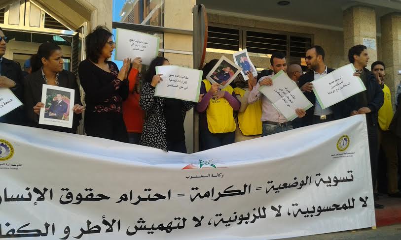 نظم مستخدمو وأطر وكالة الجنوب، المنضوون تحت لواء "ك دش"، وقفة احتجاجية صباح يومه الأربعاء 17 فبراير 2016 أمام مقر الوكالة الجديد بالعيون طالبوا خلالها الحكومة التدخل العاجل لوضع حد لمعاناتهم منذ أن قررت تنقيلهم من الرباط إلى العيون في شتنبر 2014.