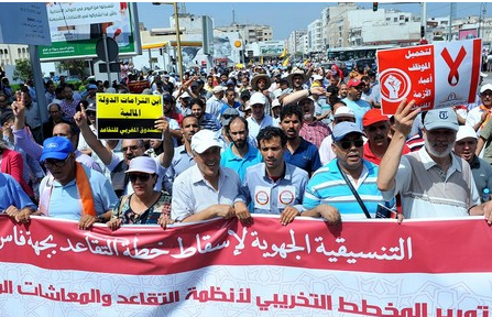 نظمت، اليوم الأحد بالرباط، مسيرة احتجاجية ضد مشروع إصلاح أنظمة التقاعد الذي صادق عليه مجلس النواب في 20 يوليوز الجاري.