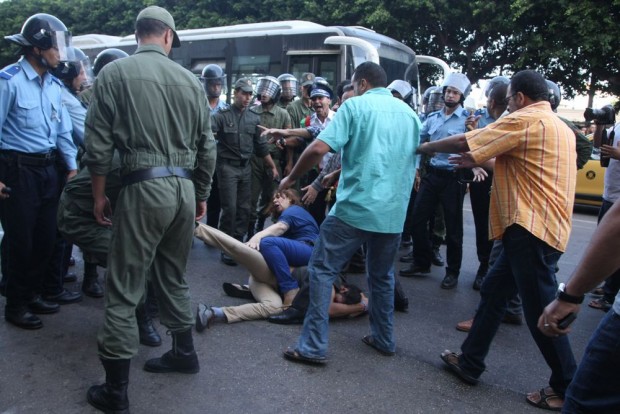 نددت الجمعية المغربية لحقوق الإنسان بتعنيف القوات العمومية للنشاركين في المسيرة التي دعت إليها التنسيقية الوطنية لإسقاط خطة التقاعد. و رصدت الجمعية عدم قيام المسؤول الأمني عن العملية بالإجراءات المنصوص عليها قانونا في فض التجمعات العمومية، بإشعار المتظاهرين بواسطة مكبر الصوت بضرورة فض تجمعهم.